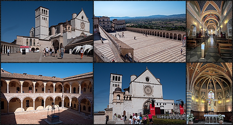 After a mediocre breakfast we drove to Assisi. This hilltop town attracts visitors from all over the world and is best known as the birthplace of St Francis. It’s a special pilgrimage place for worshippers who flock there along with other tourists to visit the Papal Basilica and view the tomb of St Francis. The Basilica is enormous and is on two levels with fabulous views of the countryside when you get to the top. Down in the crypt is the stone sarcophagus of St Francis. We were surprised that there was no charge to go in this splendid building …the church could make a fortune!
