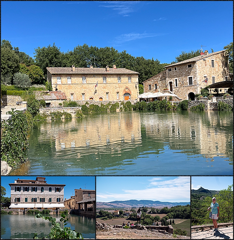 Our next stop was at the famous village of Bagno Vignoni just eight miles down the road. It’s a small, hillside settlement which attracts many tourists. Where you might expect a village square, instead there’s a large expanse of water; a tank full of hot, thermal water which bubbles to the surface. Locals used to bathe in there. Legend has it that St. Catherine dipped her toes in ther water but now it’s just a great photo opportunity. We ate lunch outside at one of the cafes but we were plagued with flies which I guess is the down side of having all that water around.