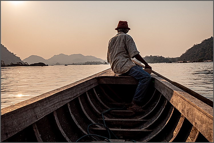 We slept well that night and were pleased to hear when we checked out that Olivia knew an experienced boatman who could navigate the low waters of the Mekong to get us back to the mainland. We were so lucky as if it was a week later the river would have been too low. Our young ferryman really knew the river and only scraped the boat once. Don’t know how he managed because all the way along you could see the bottom of the rocky river bed, just inches away it seemed.