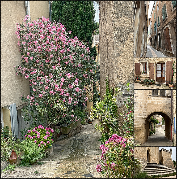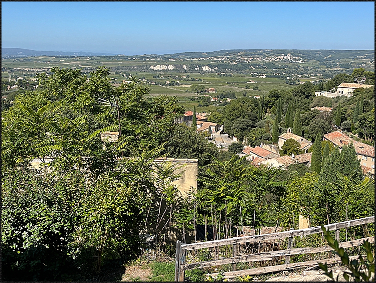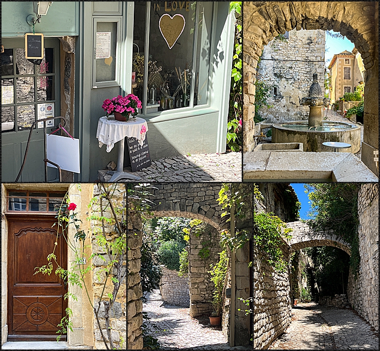 Séguret is another village which we often visit. It’s ranked as one of the ‘Most Beautiful Villages in France’ although I’m sure there are many on that list. Like Venasque it’s generally very quiet later in the year although in the ‘High Season’ it does get crowded. There are no cars driving through the narrow, cobbled streets of this medieval village which definitely adds to its charm. There are several artist’s workshops and galleries as well as artisan jeweller’s shops to wander into and a couple of tourist shops but that’s it, however the Séguret wine cellar is worth a visit. We parked at the bottom of the village where there was plenty of spaces and walked up through the Reynier Gate and along the Rue des Poternes lined with well-maintained medieval Provencal houses. We stopped a couple of times, firstly to look around a gallery where a sculptor was working on one of her pieces and then to go inside a jewellery shop. I was tempted to buy one of the beautiful pieces but the prices were a little too high for my pocket. We walked up and along to the path that takes you up to the ruined castle but one look at the state of the path was enough for us to to give the castle ruins a miss. We did enjoy the panoramic view though from the top road.