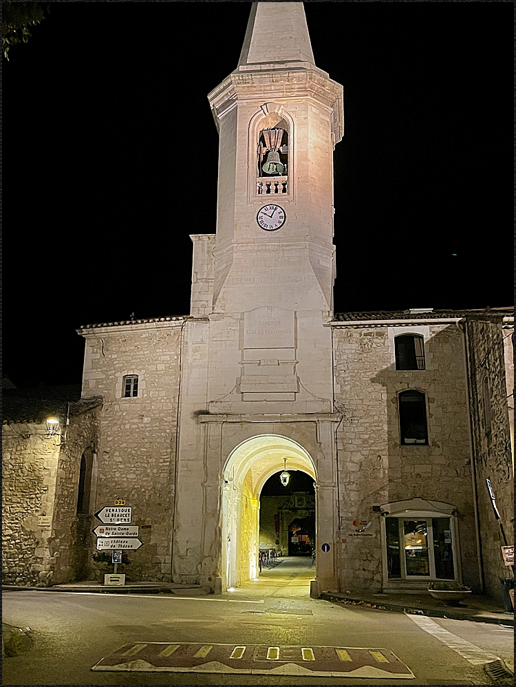 We were very happy with the location of our gîte which was only a kilometre outside the village of St Didier. There is a superb avenue in the town lined with ancient plane trees. Here are lots of restaurants, a well-supported local bar which serves good food too; a couple of grocery shops and at one end of the street there is a splendid stone archway with a clock tower you can see from miles around. Through the arch is the Chateau de Thézan which is now open again to the public. Unfortunately we missed the weekly market as we had to leave that morning but by all accounts the town is buzzing then.