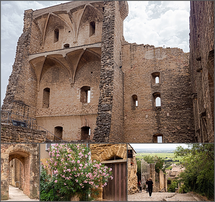 After lunch we walked up the steep cobbled street, through the 14th century Portal de la Garde gate and on up to the Chateau de Lacoste. This has had a chequered history to say the least, one of it’s occupants being the infamous Marquis de Sade. One can only guess what when on when he was in residence! Before the fashion designer Pierre Cardin bought it in 2001 the chateau was neglected and in a state of disrepair. We can remember when you could just walk in and look round the ruin, now its been renovated you have to pay to go in. Full price 12€. According to the village’s website Pierre Cardin not only spent a considerable amount of money on the chateau he also bought about thirty buildings which again he has restored. It sounds as though the jury is out regarding what the locals think of this. They’re already used to the many American students who come here every year to study art which has put Lacoste as the cultural, artistic centre of the Luberon.